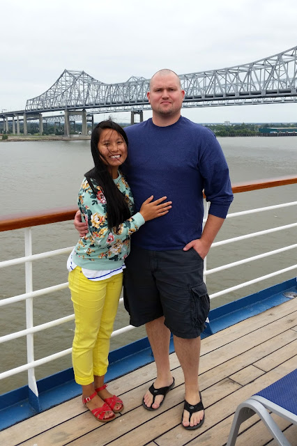 We docked on Thursday morning in New Orleans and spent our anniversary in the city. Jeremy and I visited the National World War 2 Museum, and it was incredible. They gave each person a dog tag, to which we checked in with a soldier at the "train station" and would follow up on his journey throughout the displays of the progression of the war. The documentaries and displays of the battles were extraordinary, detailed, moving. There were hands on presentations of battle invasions, libraries of live interviews, displays of planes, tanks, uniforms, etc. We spent four hours inside (had to add money to our parking meter) and could have easily returned a second day. We love our history! After checking into our hotel room, we walked down Bourbon Street to the French Quarter, Jackson Square, and then along the Mississippi River. It was such a nice walk, although Bourbon Street reminded us we were definitely NOT in Utah (a lady tried to pull us into her bar, offering us free shots). In case you didn't know, Jackson Square is dedicated to Andrew Jackson. I sure felt ignorant and ridiculous and had a good laugh as I read the sign to discover this fact. The music was beautiful and soulful in this square, and we watched a couple get married right before sunset. Jeremy treated me to dinner at the Hard Rock cafe, and apologized it wasn't more fancy. I was just happy to be with my sweetheart on such a sweet night. (Plus, I'm just so impressed that the south has such amazing vegetarian dishes. I was a little nervous I would be stuck on salad.) We rode "Daniel Tiger's Trolley" back to our hotel room because our legs hurt. We ended the night by watching Titanic and being grateful we didn't watch it before or during our cruise.