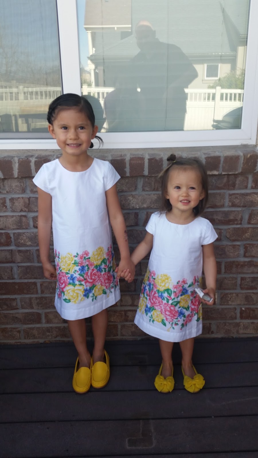 easter morning was relaxing and sweet in our home. the easter bunny doesn't go crazy, but did put out some baskets for us! the girls got their easter dresses (courtesy of grandma bodtcher), tic tacs, otter pop covers, and church books (amelia got the book of mormon illustrated version plus some card games, and scarlett got "dinosaur goes to church" with two dinosaurs because that's what she's into lately). jer got a small basket as well, even though we promised no baskets for each other... oops! the girls had a mini-hunt with the eggs they dyed and obviously loved posing for their picture.